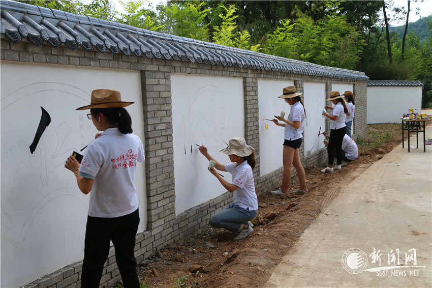 设计与艺术学院暑期社会实践团正在为王石凹村绘制政策形象墙