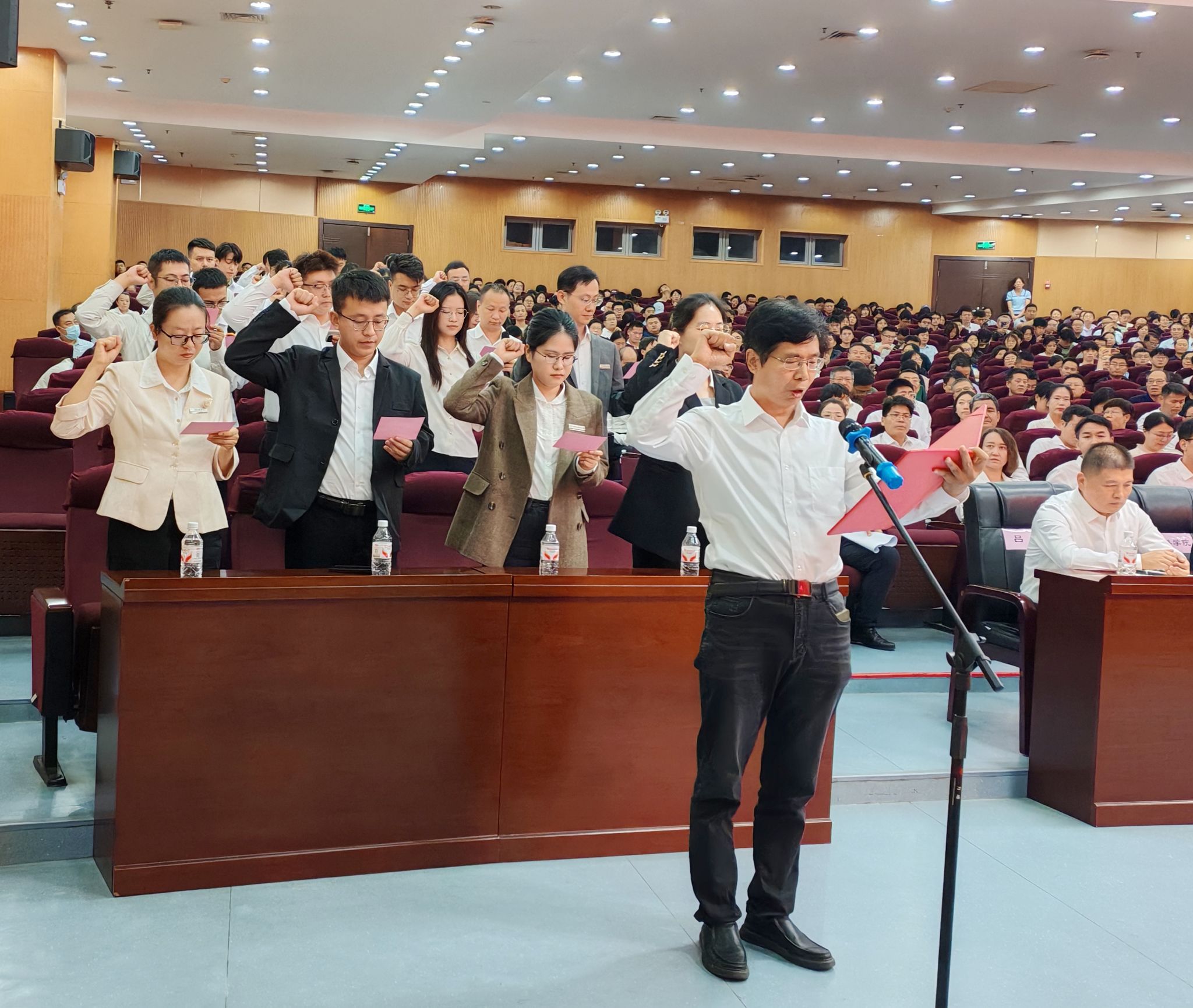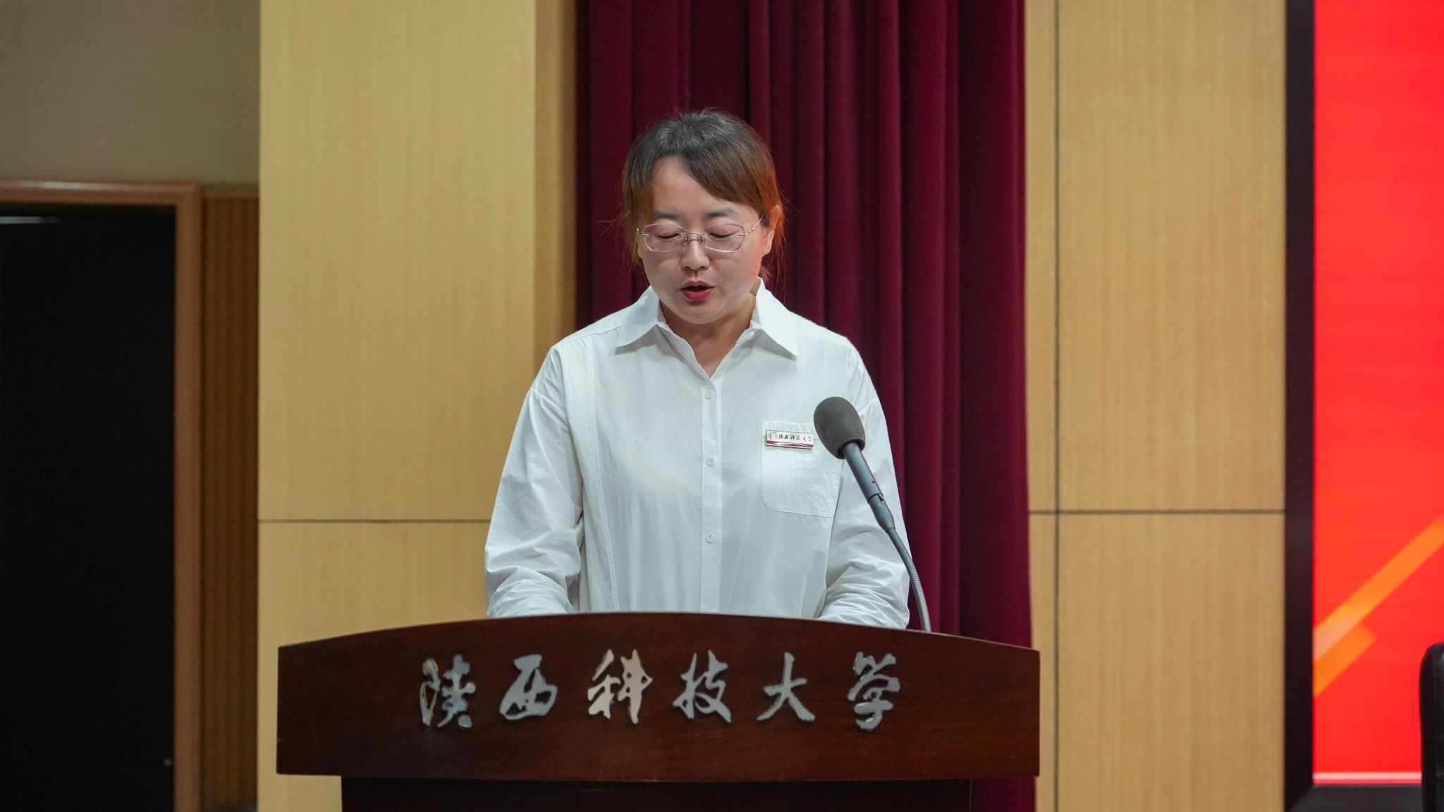 在陕西省青年突击手、陕西省师德先进个人、数学与数据科学学院教授白云霄的领誓下,在场全体新入职教师庄严宣誓。