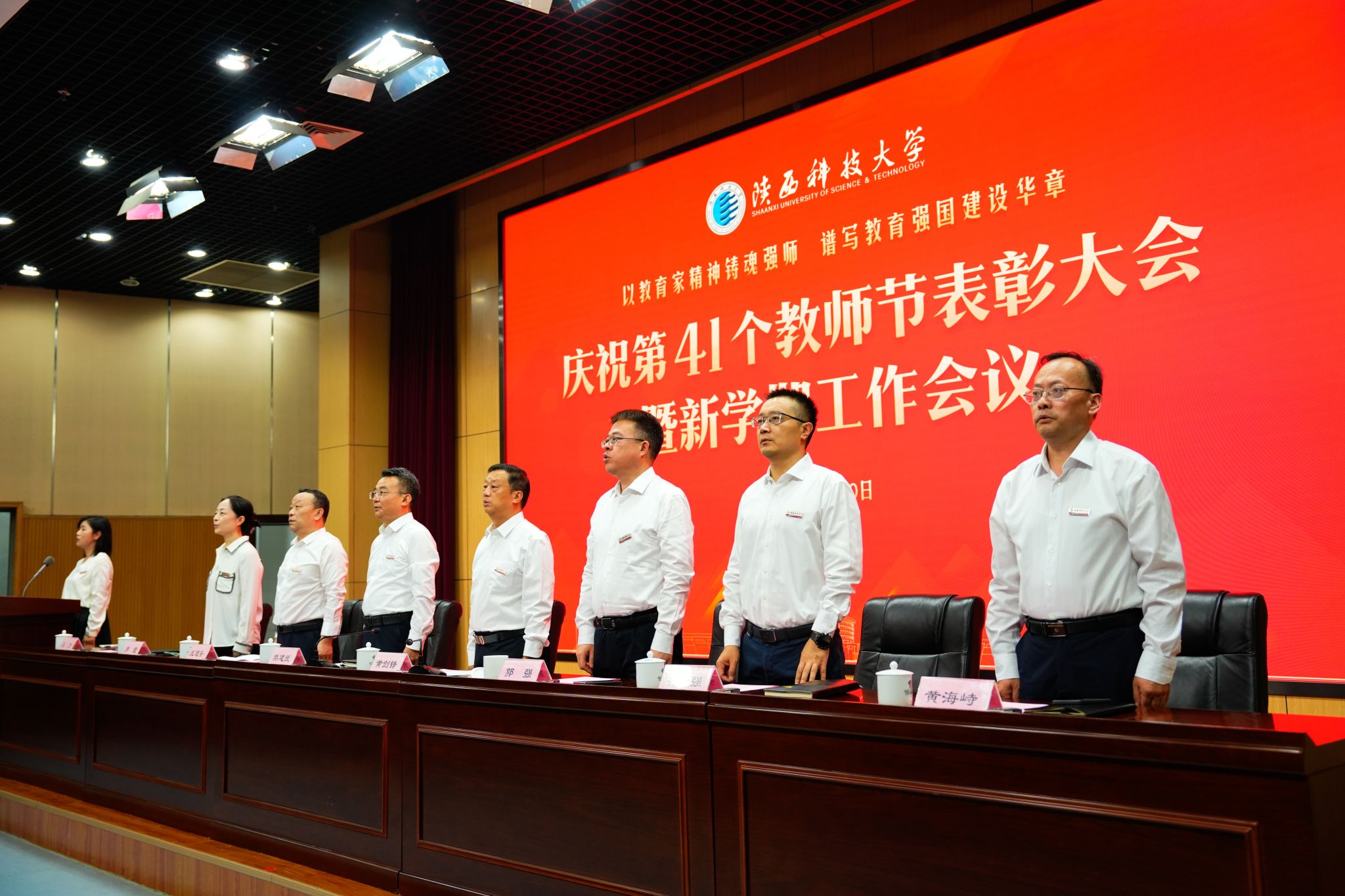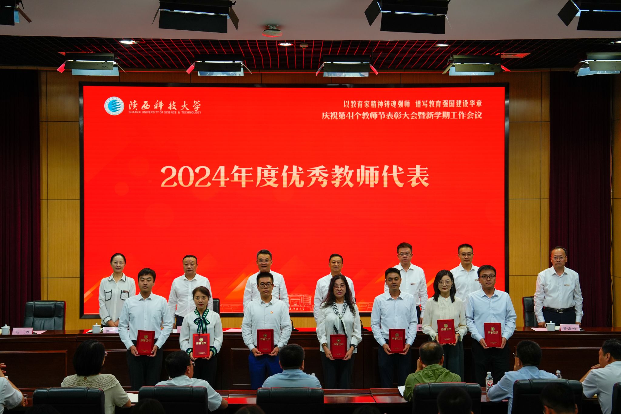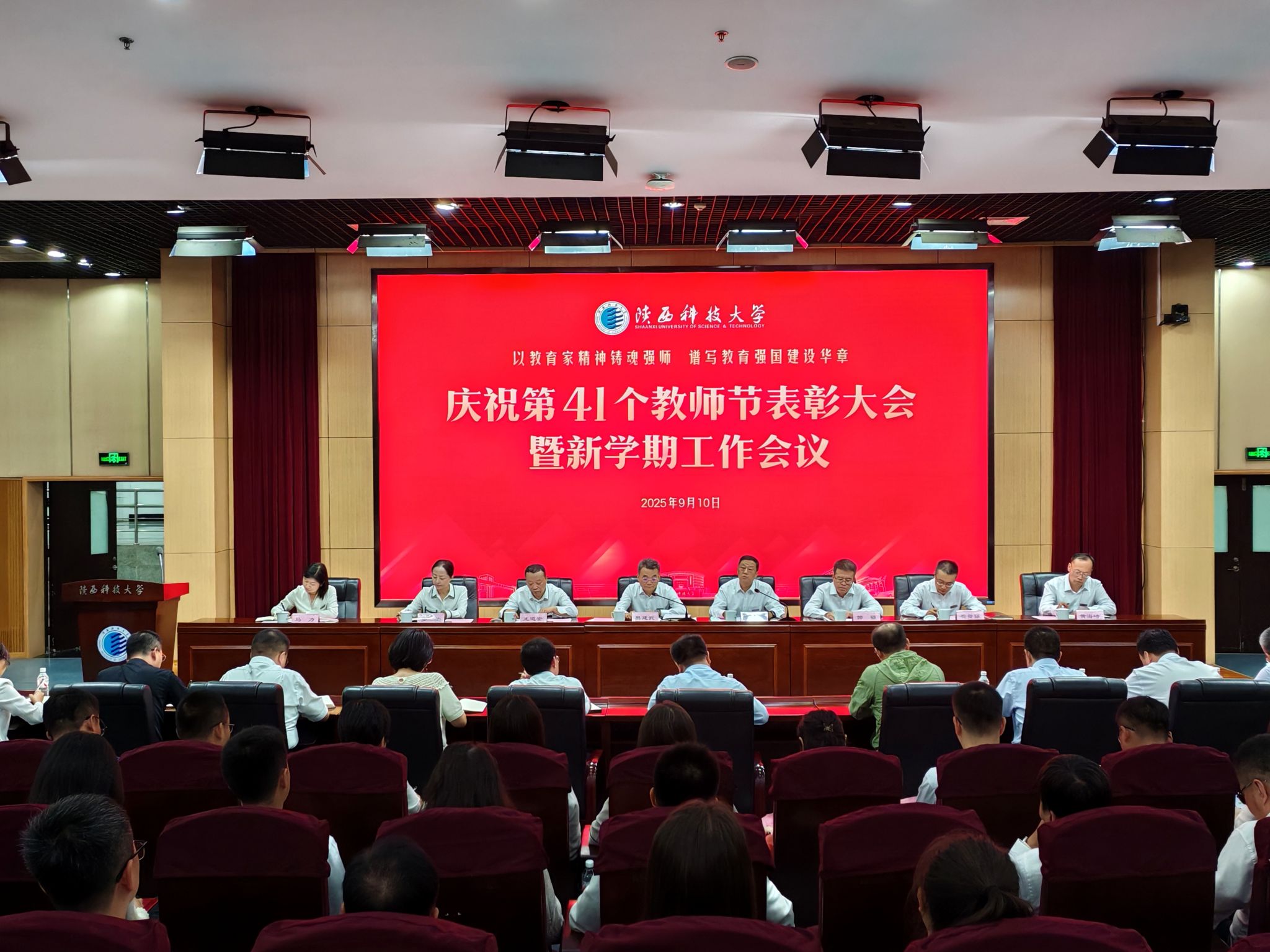 9月10日,陕西科技大学召开庆祝教师节表彰大会暨新学期工作会议,学习习近平总书记给全国特岗教师代表的重要回信精神,表彰2024至2025学年做出突出贡献的优秀教师,总结回顾上半年工作、安排部署下半年重点任务。党委书记樊建武、校长黄剑锋出席并讲话,党委副书记王道安宣读表彰决定和表彰名单,全体在家校领导出席会议。会议由副校长马力主持。