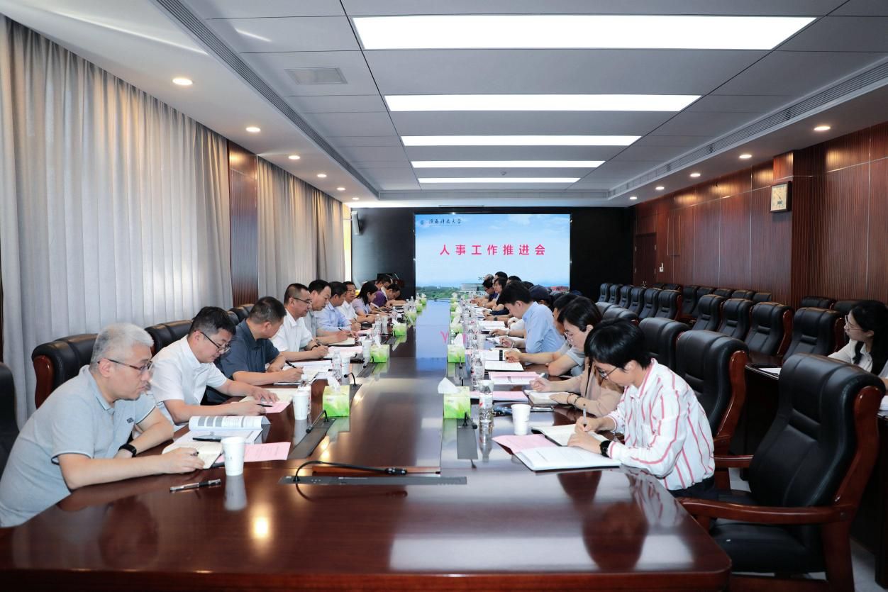 会上,人事处汇报省级人才项目申报进展及近期重点工作,轻工科学与工程学院、电子信息与人工智能学院分别就博士后招收培养和集成电路研究院建设作经验交流。