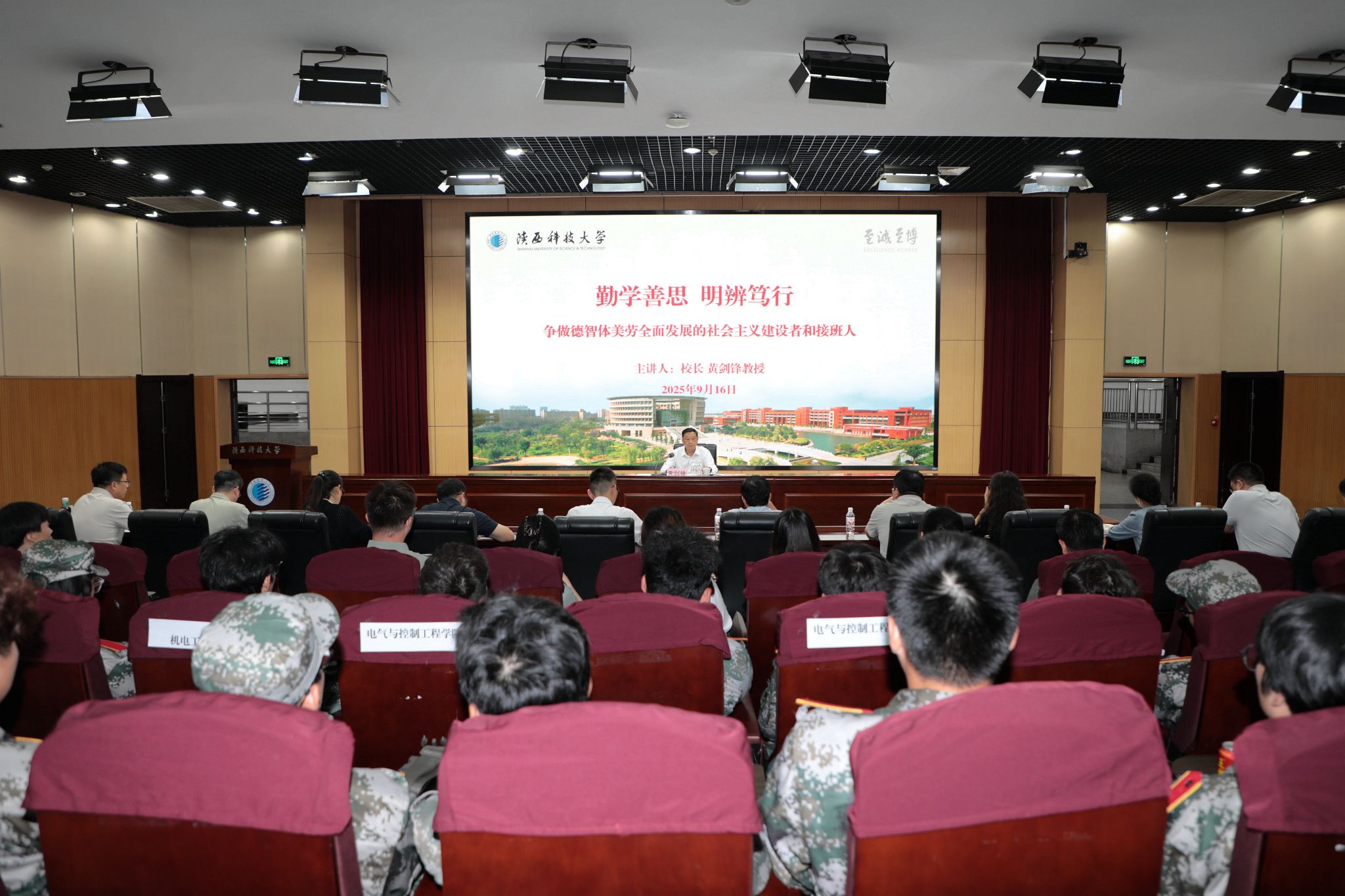 9月16日,陕西科技大学校长黄剑锋以“勤学善思 明辨笃行 争做德智体美劳全面发展的社会主义建设者和接班人”为题,为2025级新生讲授“开学第一课”。