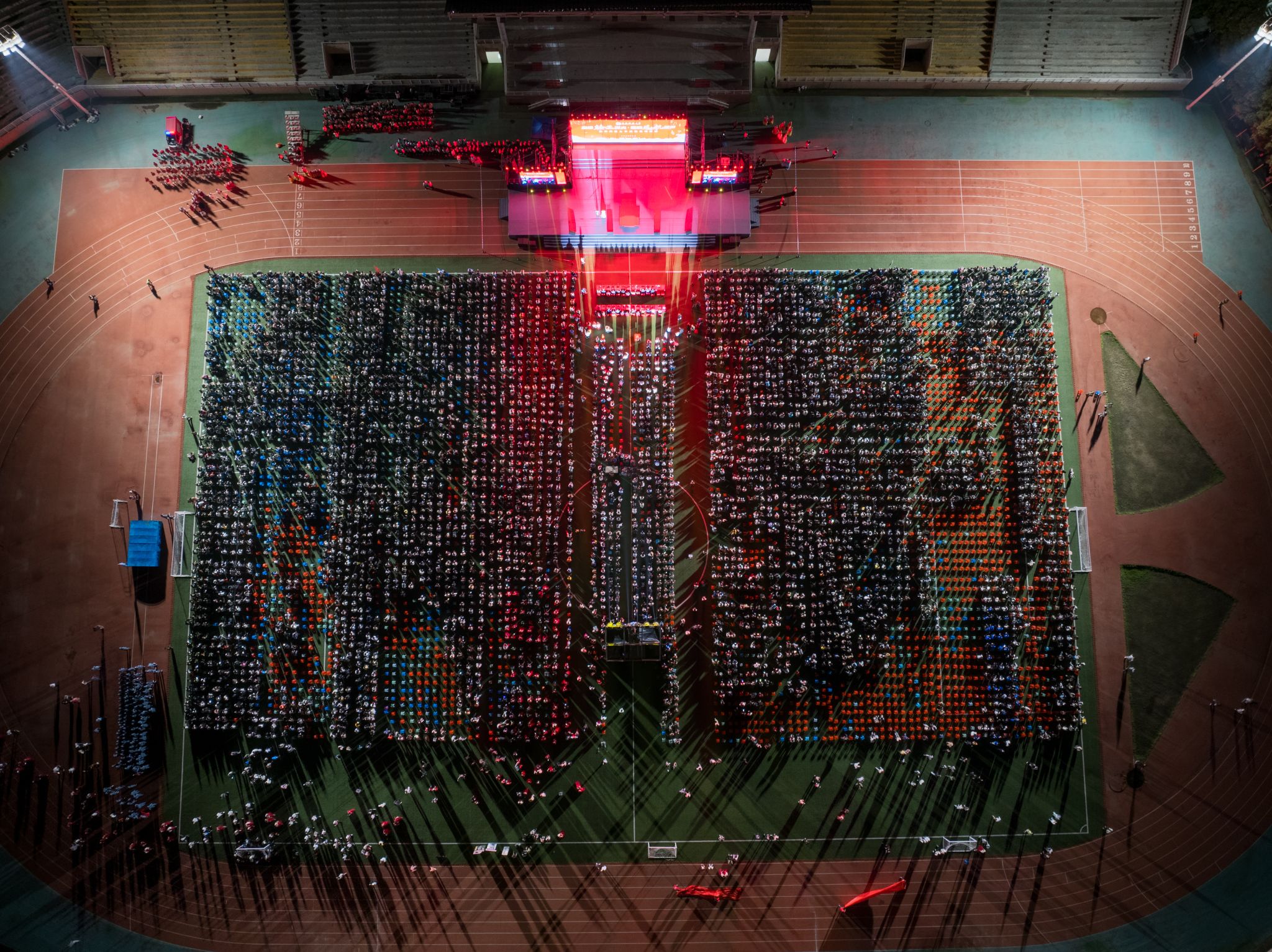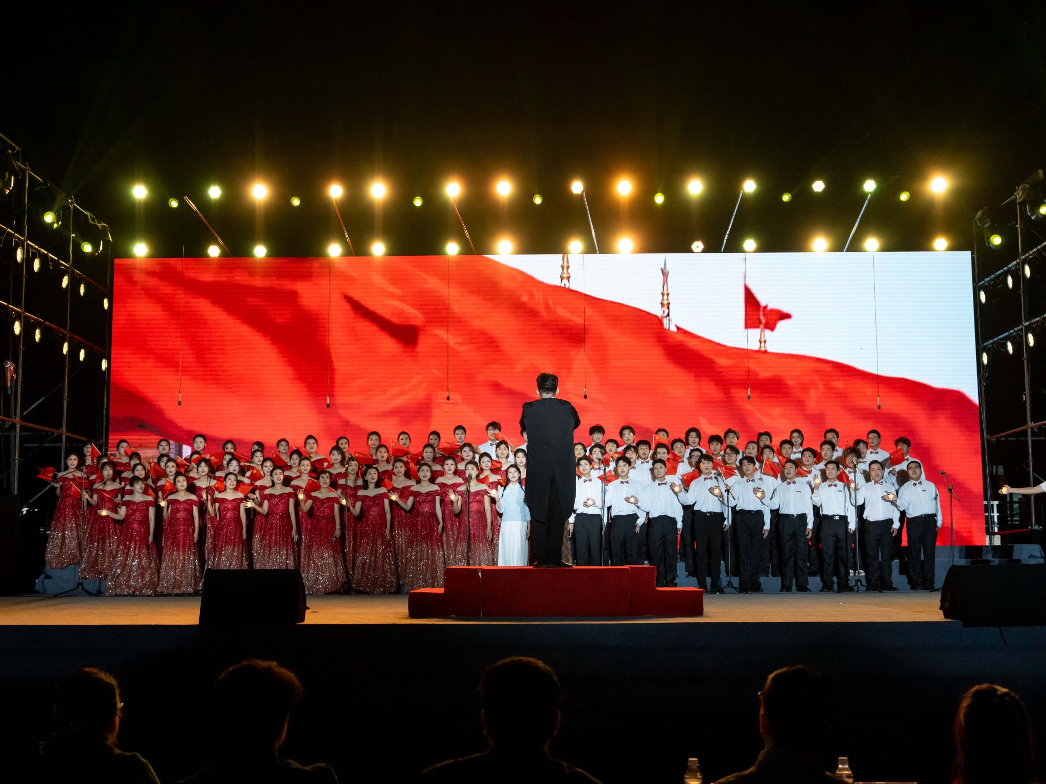 为庆祝中华人民共和国成立76周年,涵育校园文化、弘扬大学精神,9月29日晚,陕西科技大学在田径场举行“赓续轻工薪火·唱响远航新声”校歌传唱活动。党委书记樊建武,校长黄剑锋,党委副书记李学军,副校长黄海峙、马力,与各学院师生代表、2025级新生共同参与活动。