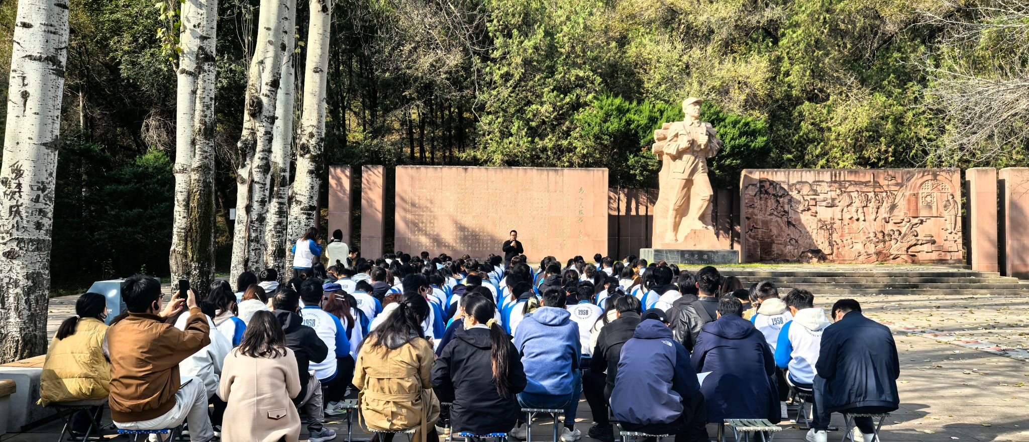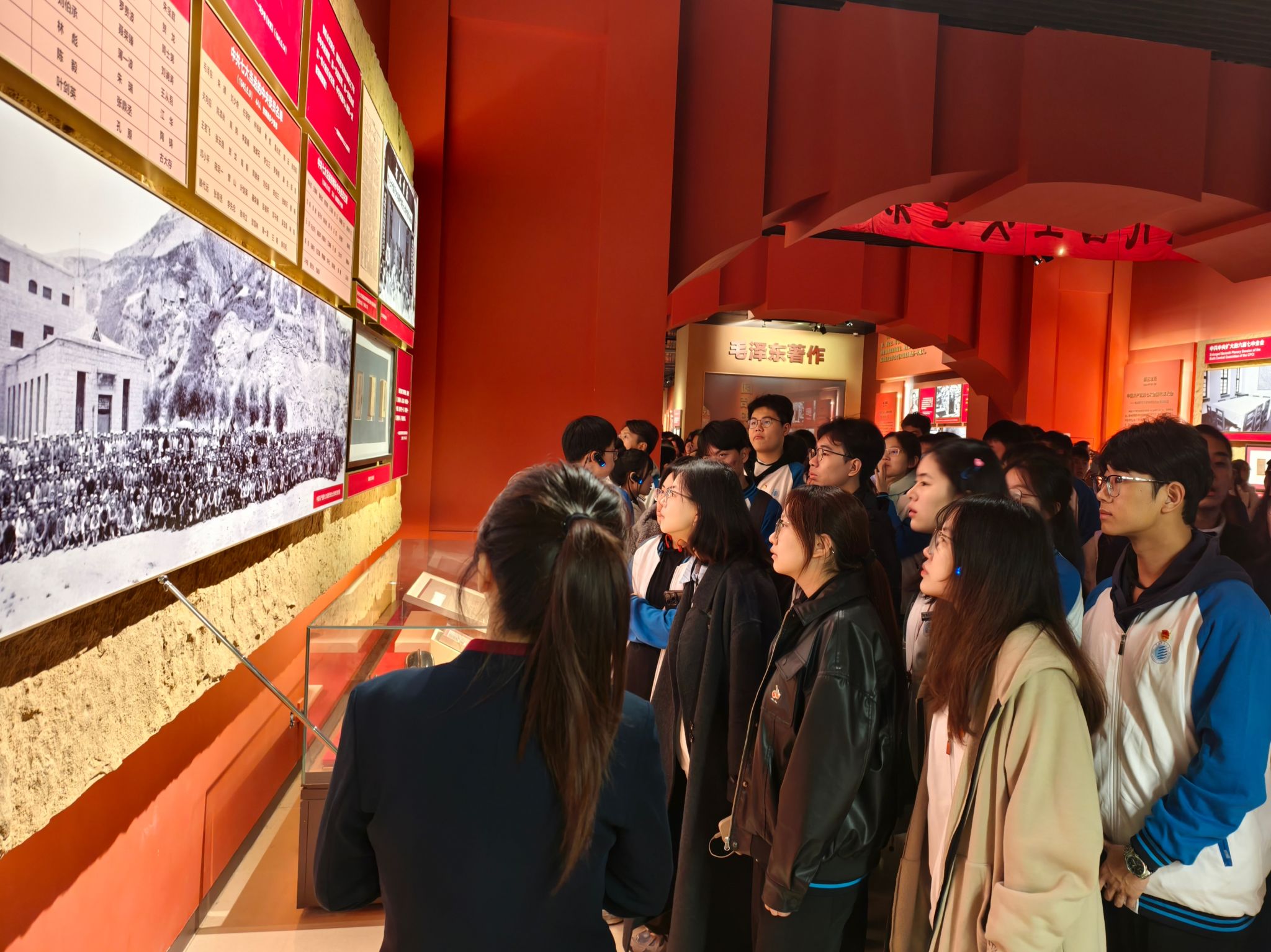 在去往延安的路上,研学团精心打造“车厢课堂”,马克思主义学院“红色基因·薪火传承”研究生宣讲团开展主题宣讲,各车辆学员自发开展红歌传唱,营造出浓厚的学习氛围。研学团先后走进延安革命纪念馆、枣园革命旧址和为人民服务广场等,观看实景演出《延安延安》与主题电影《阿良的长征》。在张思德烈士雕塑前,延安干部学院讲师安治国为全体师生做主题宣讲,研学团成员集体诵读《为人民服务》全文。师生们通过实地参观、现场教学、情景体验等多种形式,在行走中感悟历史,在思考中砥砺初心。