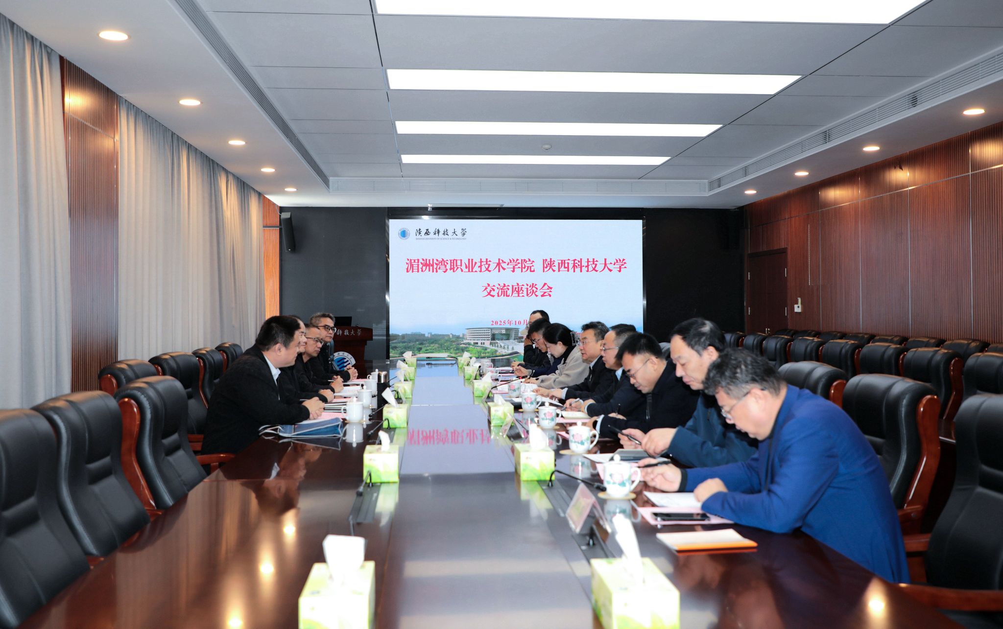 10月21日,湄洲湾职业技术学院党委书记柯金国一行来陕西科技大学调研交流。陕西科技大学党委书记樊建武,党委副书记、纪委书记、监察专员罗莹出席接待活动。