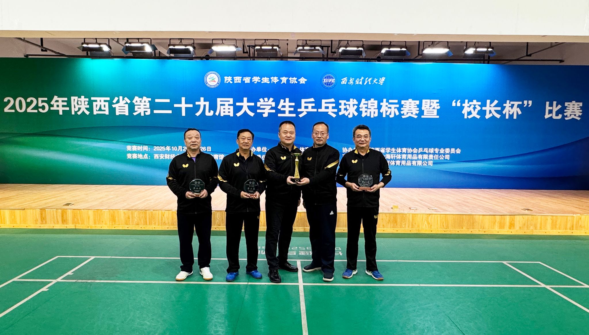 10月25日至26日,陕西省第二十九届“校长杯”乒乓球赛在西安财经大学举行。陕西科技大学代表队以全胜的战绩勇夺团体冠军,创下学校在此项赛事中的历史最好成绩。