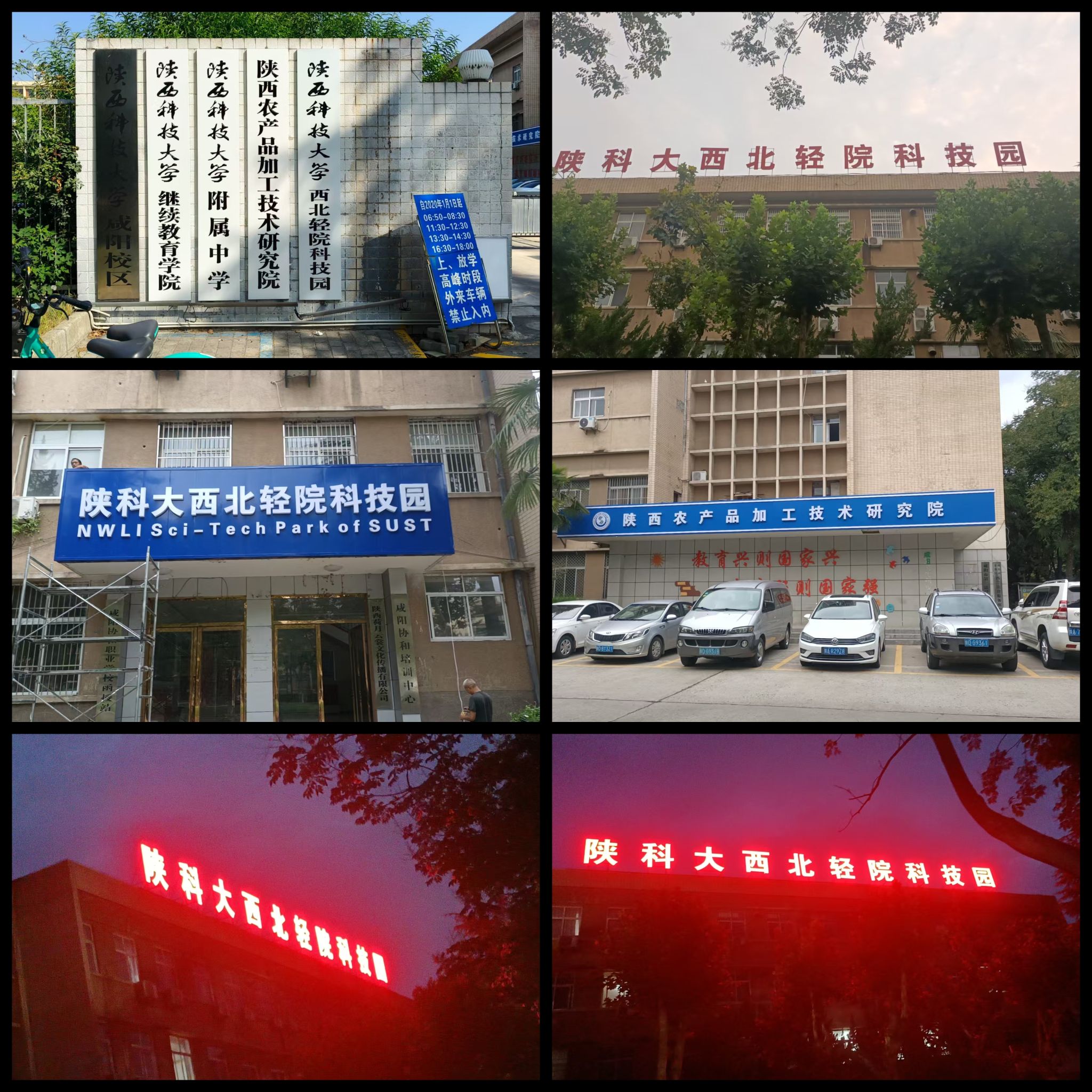 优化园区环境,提升品牌影响力。为增强园区辨识度与凝聚力,前沿院于8月初完成“陕科大西北轻院科技园”楼体标识照明系统安装,通过夜间亮化工程与导引标识优化,显著提升园区形象。同时,结合秦创原创新资源,园区已形成轻化工、机电、大健康三大功能区规划,初步构建“孵化—中试—产业化”全链条生态。