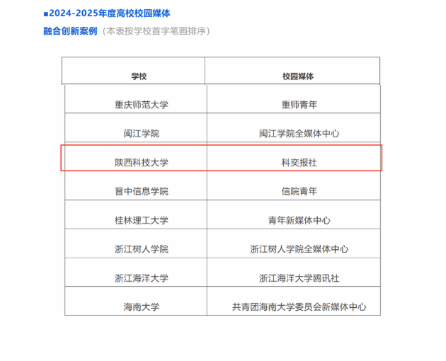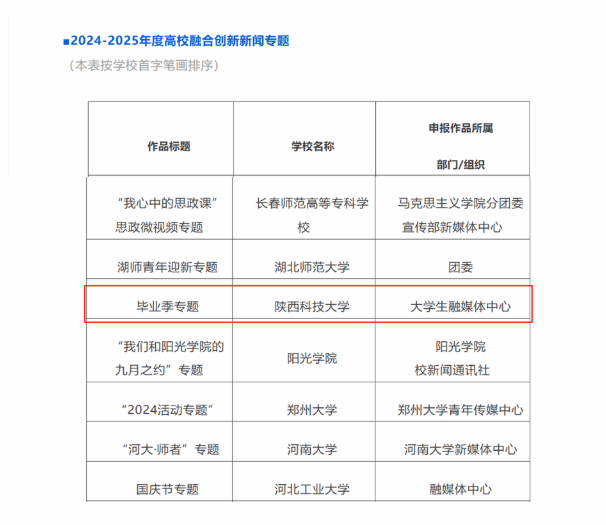 近日,由中国青年报社、中青校媒主办的“寻找2024-2025年度高校校园媒体融合创新案例”评选活动结果揭晓。经网络投票和专家复审等环节综合评定,党委宣传部大学生融媒体中心选送的“2024年毕业季专题”入选“2024-2025年度高校融合创新新闻专题”,校团委“科奕报社”入选 “2024-2025年度高校校园媒体融合创新案例”。