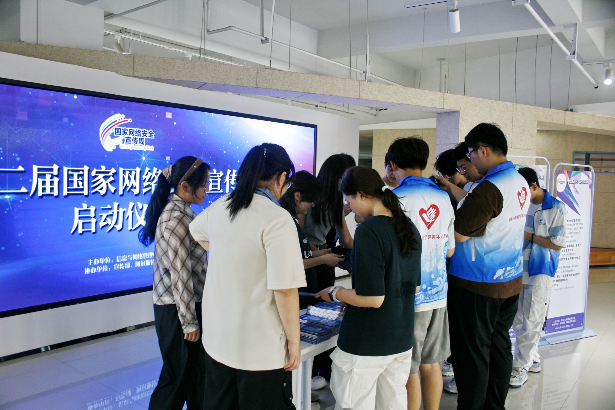 线上线下构建宣传矩阵。宣传周期间,学校通过“线上+线下”多渠道展开广泛宣传。利用官网、移动门户、微信公众号和校园电子屏等平台推送网络安全知识,并在至博文化长廊设置宣传点,发放《网络安全知识手册》,营造全员参与的良好氛围。