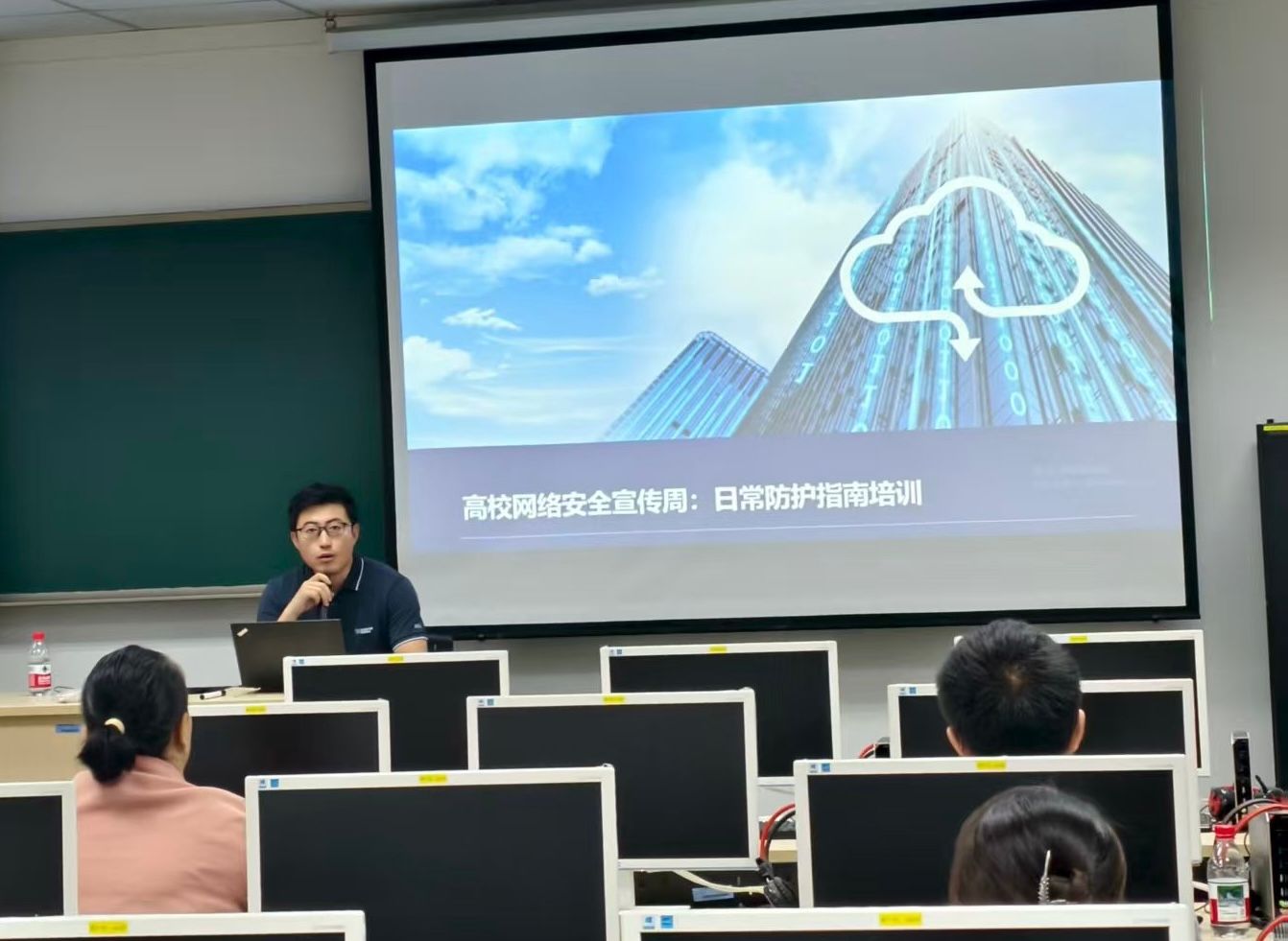 专家培训提升防护技能。学校邀请深信服科技高级网络安全专家作题为“高校网络安全宣传周——日常防护指南”专题培训,通过理论解读与真实案例剖析,为校内信息员提出切实可行的防范建议,进一步强化了学校网络安全队伍建设。