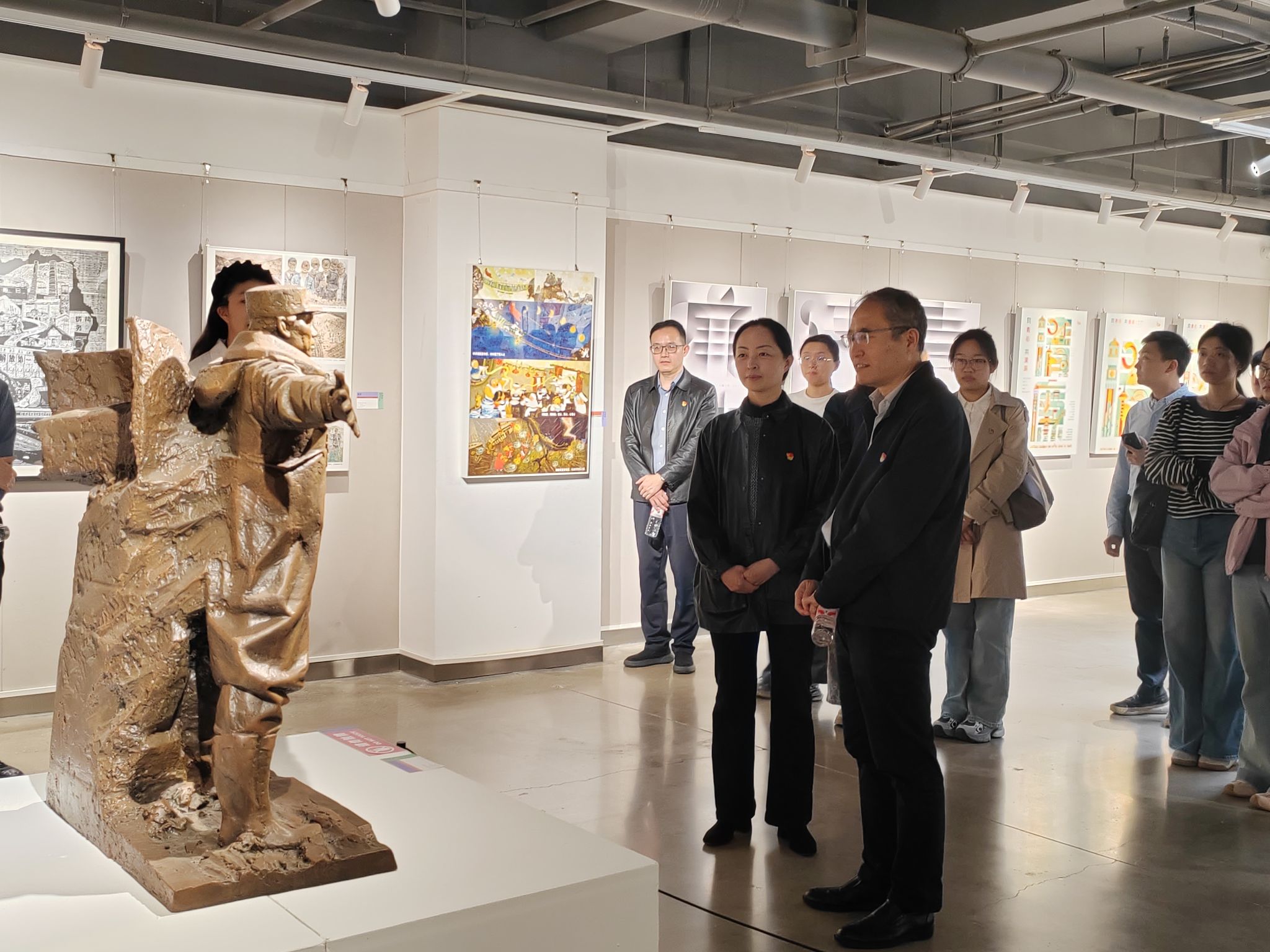 活动首站设在人文楼一层丝路文化与创新设计展厅。党员同志们集中观看了“良渚杯”首届大学生廉洁文化艺术大赛优秀作品西北地区巡展与陕西科技大学第六届廉洁文化艺术大赛优秀作品展。展览作品以艺术语言生动诠释廉洁理念,弘扬崇廉尚洁的价值导向,为校园文化建设注入精神给养和清廉之风。