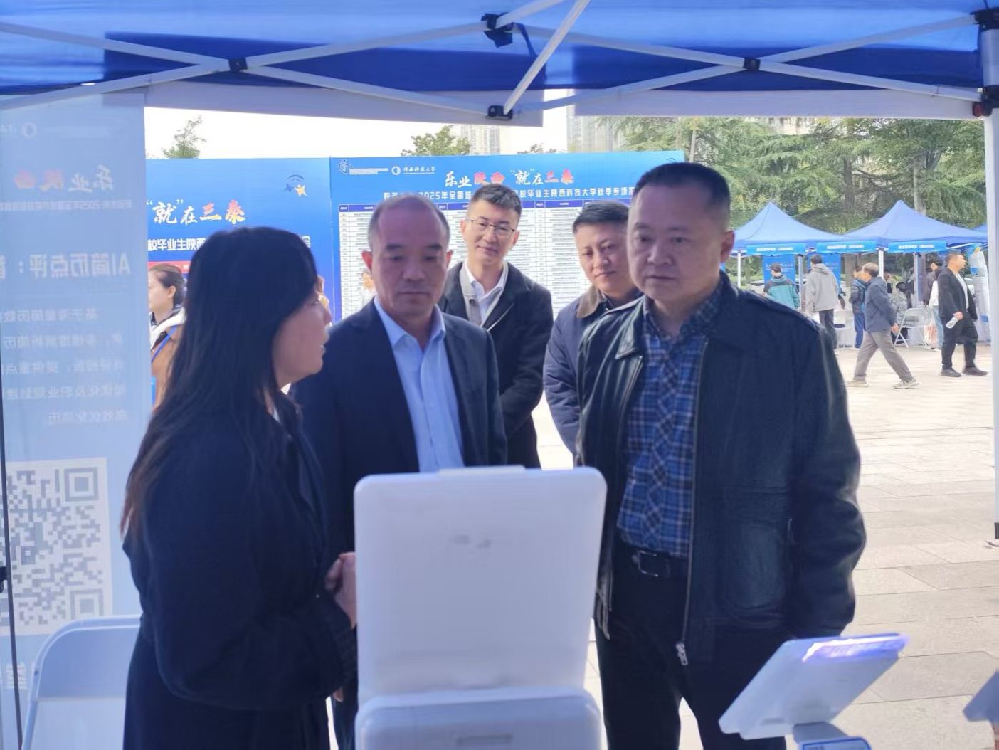10月23日,2025年全国城市联合招聘高校毕业生陕西科技大学秋季专场招聘会在至博大道文化长廊举行。党委副书记李学军到场调研指导。