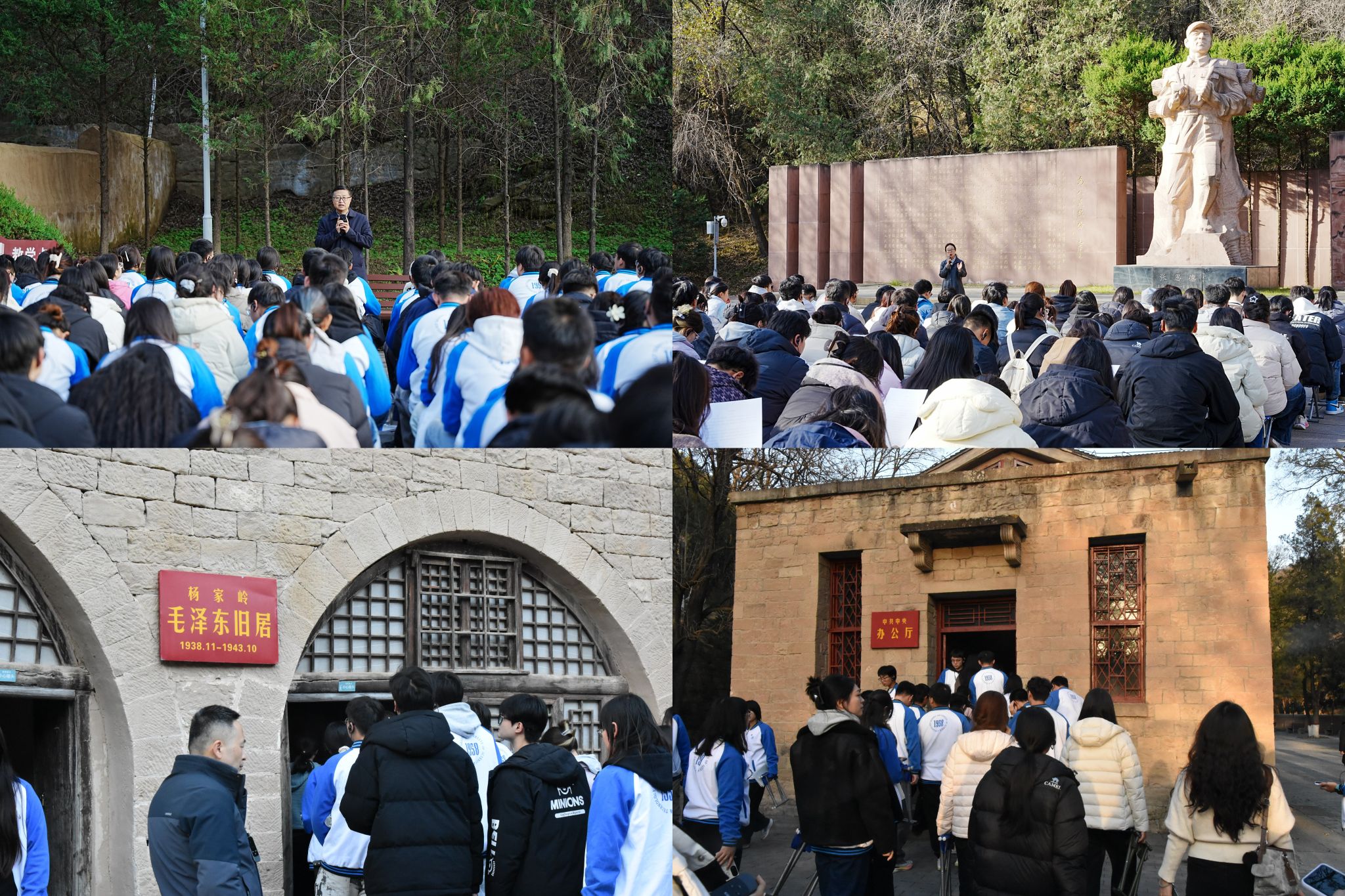 杨家岭的劲松翠柏间,朴素的石窑洞见证着革命先辈的艰苦奋斗,诉说着延安时期的动人故事。枣园旧址里,师生驻足于毛泽东同志曾伏案创作20余篇光辉著作的木桌与煤油灯前,感悟思想的伟力。
