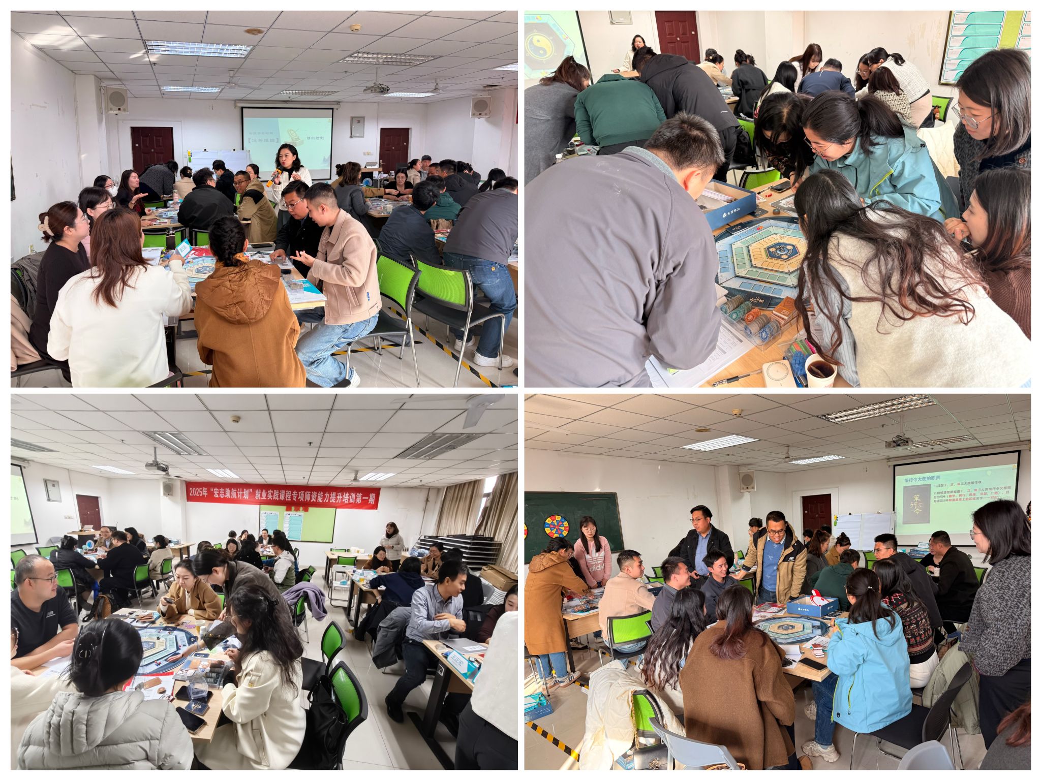 创新培训模式:从理论灌输到实践赋能。本次培训突破传统理论教学模式,引入体验式教学法。通过“大学模拟沙盘”角色扮演,帮助教师掌握低年级学生生涯唤醒方法;“职业剧本杀”情景推理助力探索职业目标引导策略;粘粘乐“戏”法则成为分析性格特质、实现人岗匹配的有效工具。配合简历修改、模拟面试等实战环节,全面提升教师的就业指导实操能力。