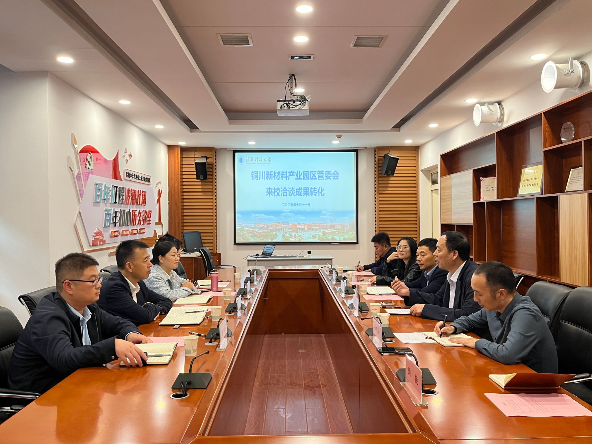 为深入贯彻落实学校第三次党代会精神,扎实推进服务社会创优行动,深化产学研协同创新,10月11日下午,铜川新材料产业园区管委会主任杨军一行4人来校,就科技成果转化开展座谈交流。科技处处长朱建锋、物理与信息科学学院院长张鹏伟、材料科学与工程学院副院长伍媛婷及环境科学与工程学院相关专家教授参加座谈。会议由前沿科学与技术转移研究院副院长李志如主持。