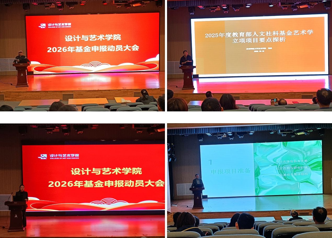 10月15日下午,设艺学院在人文楼小剧场召开2026年国家基金申报动员会,学院全体教师参会,副院长米高峰主持会议。