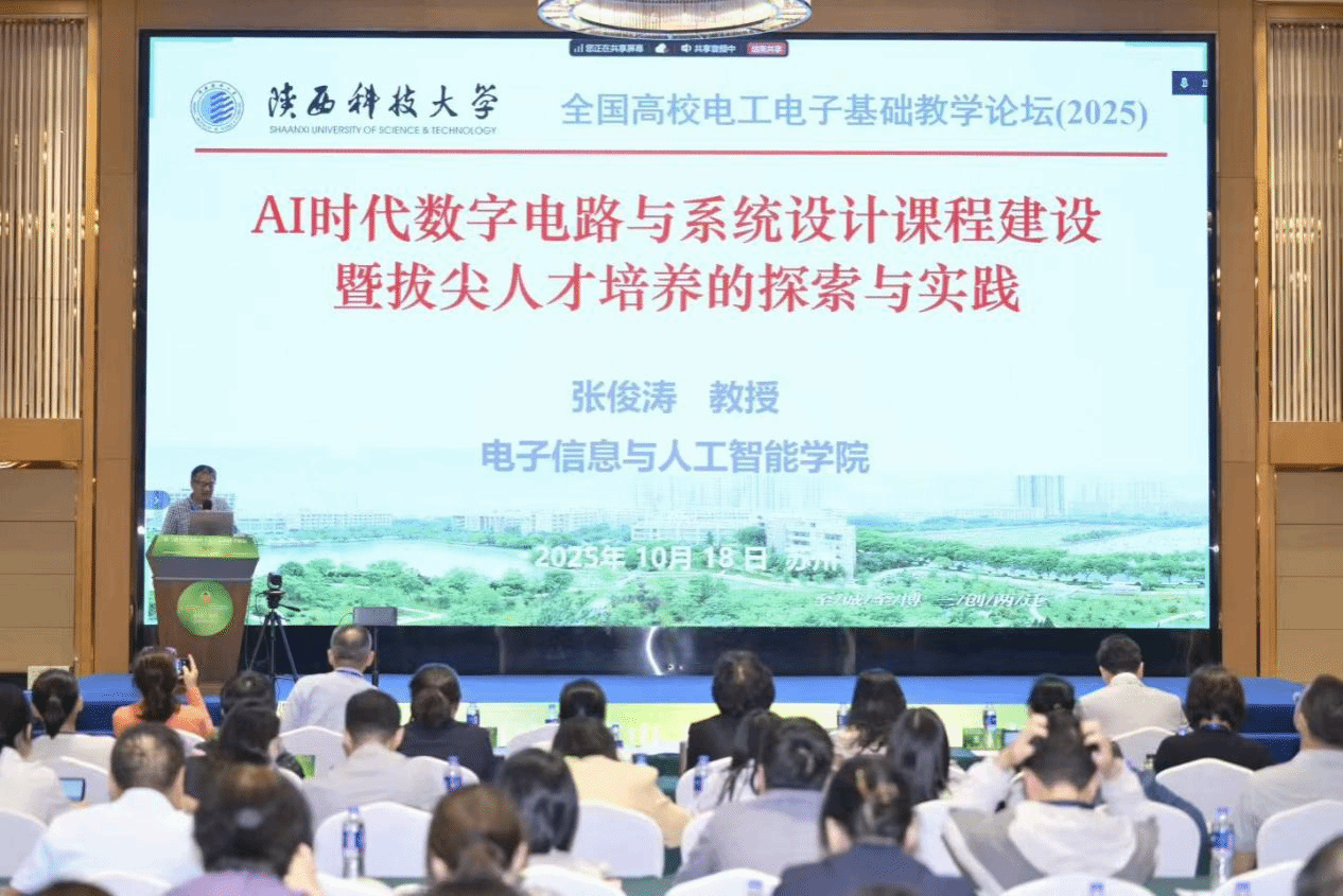10月18至19日,第二届全国高校电工电子基础教学论坛在苏州召开,电智学院张俊涛教授受邀以“AI时代数字电路与系统设计课程建设暨拔尖人才培养的探索与实践”为主题做专题报告,报告受到与会教师的一致好评。