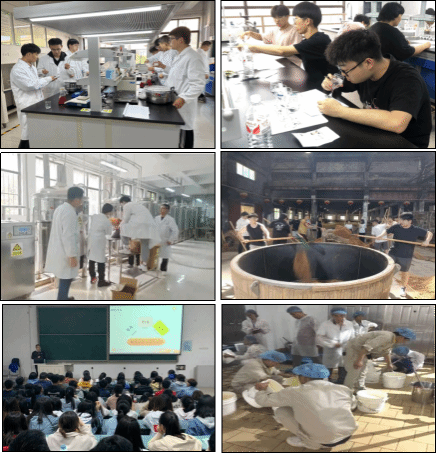 校企协同,共建产教融合育人体系。学院紧密围绕陕西省白酒等重点产业链发展需求,与西凤酒业、酿酒工程研究院、陕西粮食质量安全中心等单位深度合作,共建“食品科学与工程教改班”。以产业实际需求为导向,校企联合构建“通识+专业+拓展+融合”四层次课程体系,围绕粮食安全检测、白酒智能制造与品评、药食同源资源开发等方向合作开发教学模块。企业专家全程参与人才培养方案制定、课程建设与课堂教学,推动教学内容与行业标准紧密衔接,实现人才培养与产业需求同频共振。