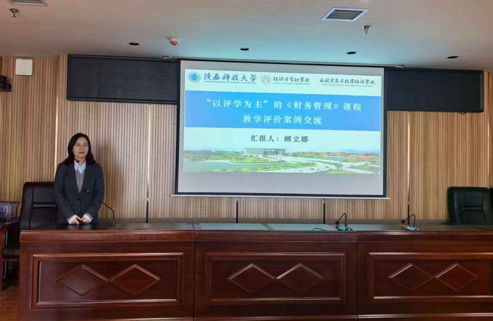 交流会上,阚立娜从评学为主的教学评价体系背景与内涵、评学体系与OBE理念融合、教学升级路径、多元评价工具、教学成效与改进等五个方面进行深入交流,详细介绍了OBE理念下以评学为主的教学评价方法在《财务管理》课程目标重构、教学内容优化、教学方法创新中的具体应用。