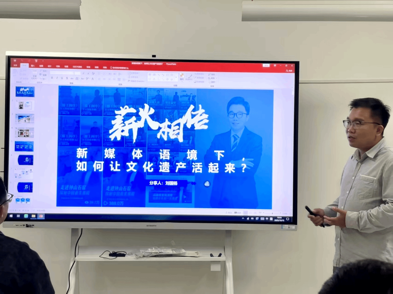 报告会上,刘国杨教授结合自身在文化传播领域和自媒体领域的实践和积累,从“扎根田野”“时空对话”“破壁表达”“跨界共创”四个维度出发,对如何将文化遗产与新媒体相结合,推动文化遗产活化做了详细讲述,表示一定要对文化遗产怀有敬畏之心,善于挖掘文化遗产背后的故事,肩负起传播优秀传统文化的时代使命。