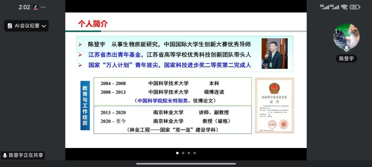 陈登宇,南京林业大学教授、博士生导师,国家重大人才工程青年项目入选者,江苏省高等学校优秀科技创新团队带头人,中国国际大学生创新大赛优秀导师。主要从事生物质热解气化领域的教学、科研和产业化推广工作。主持国家重点研发计划课题、江苏省杰青等项目,在Angew. Chem. Int. Ed.、Renew. Sustain. Energy Rev.等期刊发表论文60余篇。研究成果入选2022年和2024年中国林草科技十大进展,并得到国家部委采纳推广,获国家科技进步奖二等奖(排2)、中国产学研合作促进会科技创新人物奖、中国科学院院长特别奖等奖励。