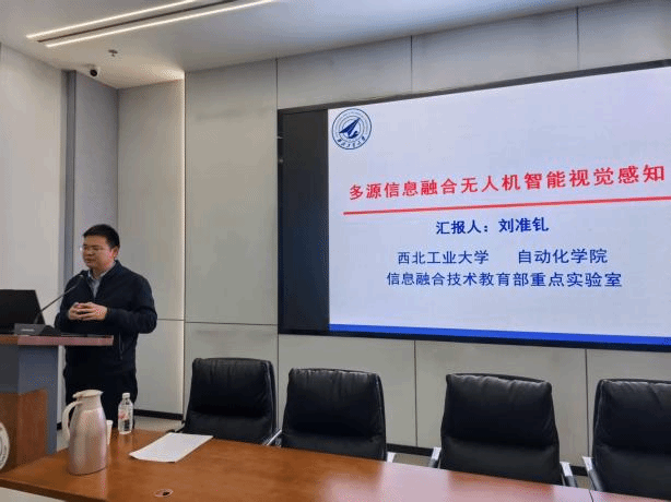 报告会上,刘准钆教授首先阐述了无人机跨模态图像智能匹配方法,该方法融合多源信息,显著提升了无人机在复杂场景下的视觉定位精度;还讲解了多特征融合的弱小图像目标检测技术,能够在复杂背景下实现对远距离目标的快速识别与跟踪。最后,刘教授还分享了国家自然科学基金撰写经验,指出在基金打磨过程中应该注意的事项。